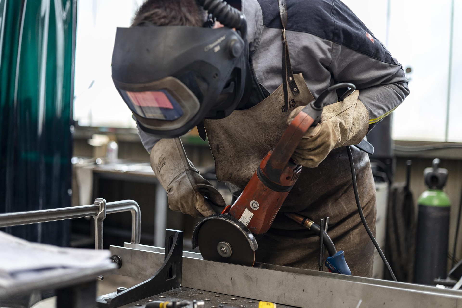 - Zu deiner Arbeit wird das Bearbeiten von Metallerzeugnissen durch Schleifen, Schweißen, Kanten und Bohren gehören
